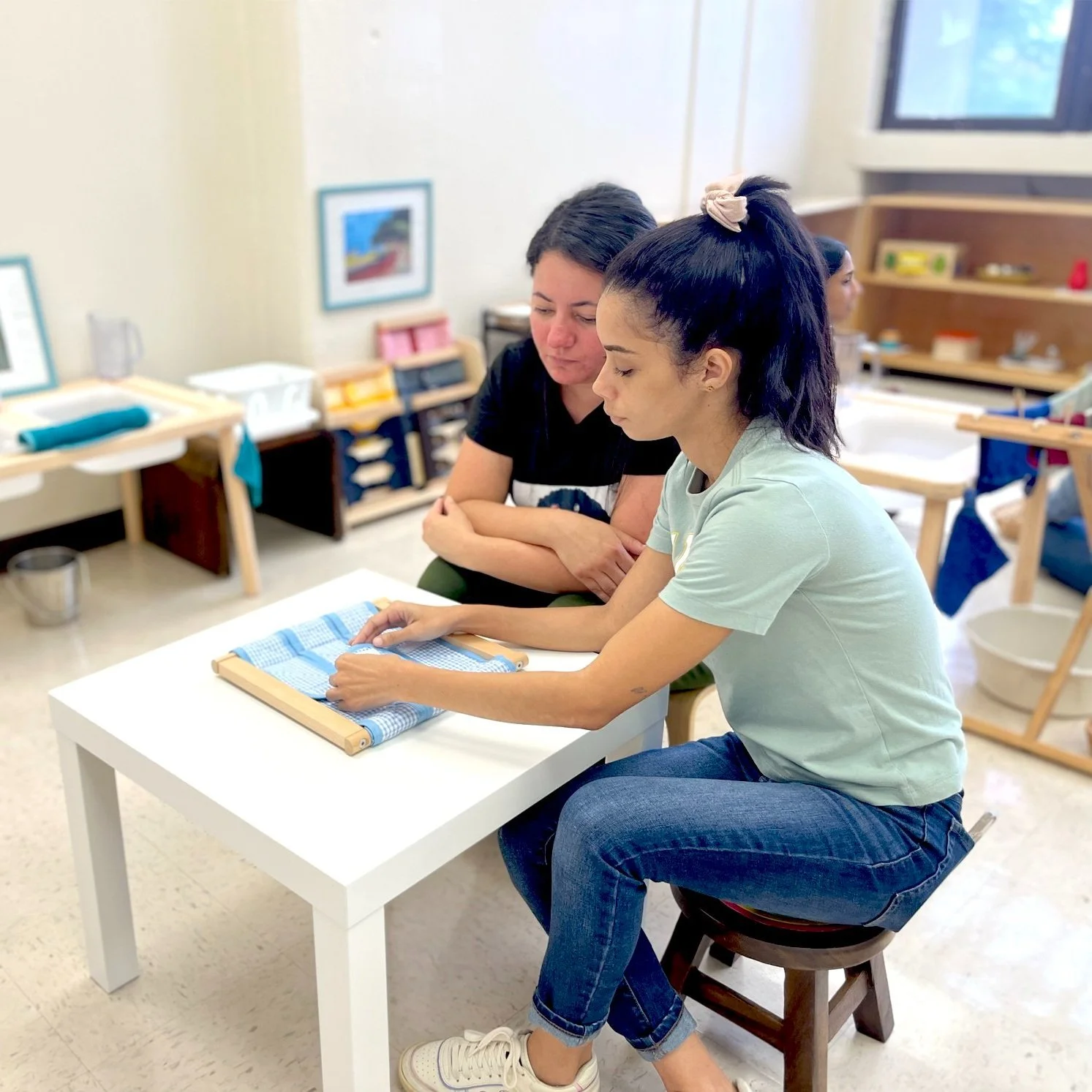 El Programa de Asistentes en Implementación del Currículo Montessori comenzó como una iniciativa de madres dedicadas que se ofrecieron como voluntarias para apoyar a los maestros, luego decidieron educarse para estar preparadas en la aplicación de los principios Montessori en la escuela. Con el tiempo, este programa ha evolucionado y hoy en día ofrece a las familias nuevas oportunidades de empleo en INE. Al convertirse en Asistentes de Implementación del Currículo Montessori, los miembros de la comunidad pueden adquirir valiosas habilidades y experiencia en la educación Montessori, creando un camino para la movilidad social. Este programa no solo fortalece la conexión entre las familias y la escuela, sino que también empodera a los individuos al brindarles un trabajo significativo que contribuye al crecimiento educativo de los y las estudiantes mientras fomenta un sentido de orgullo y pertenencia dentro de la comunidad.