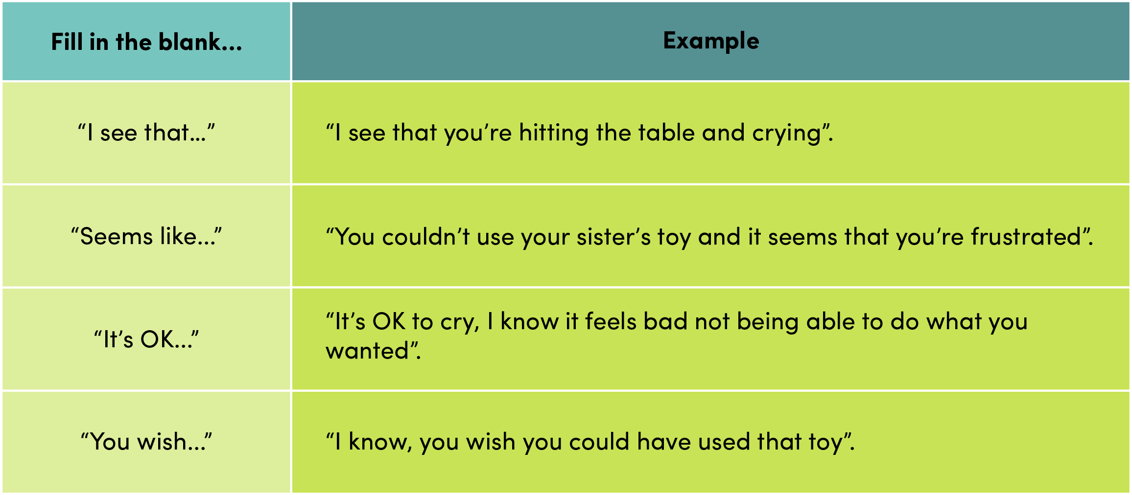 Many times, after establishing a limit or redirecting, there can be a strong reaction from the child. First, remember tantrums are normal. They can happen because toddlers don’t have the words that they need to express their emotions in another way, because they are experiencing sadness or frustration of not having things go their way, or because of tiredness, hunger or irritation. Also, remember that they thrive on order? Sometimes, when things lose order in their lives (something changed in the routine, there was a fight amongst adults, etc.), this can destabilize the child. Some elements to remember are: