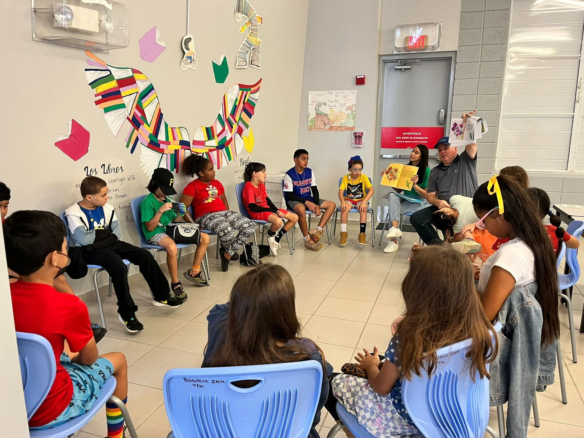 Thanks to INE’s staff and its Volunteer Program, volunteers Carolina Ballester Sánchez, Fabián Hernández, BPPR employee and Karla Soto, MCS employee, read to the participants the story “Alí - Alí” by the Puerto Rican author Rosa Martínez Lorenzo.