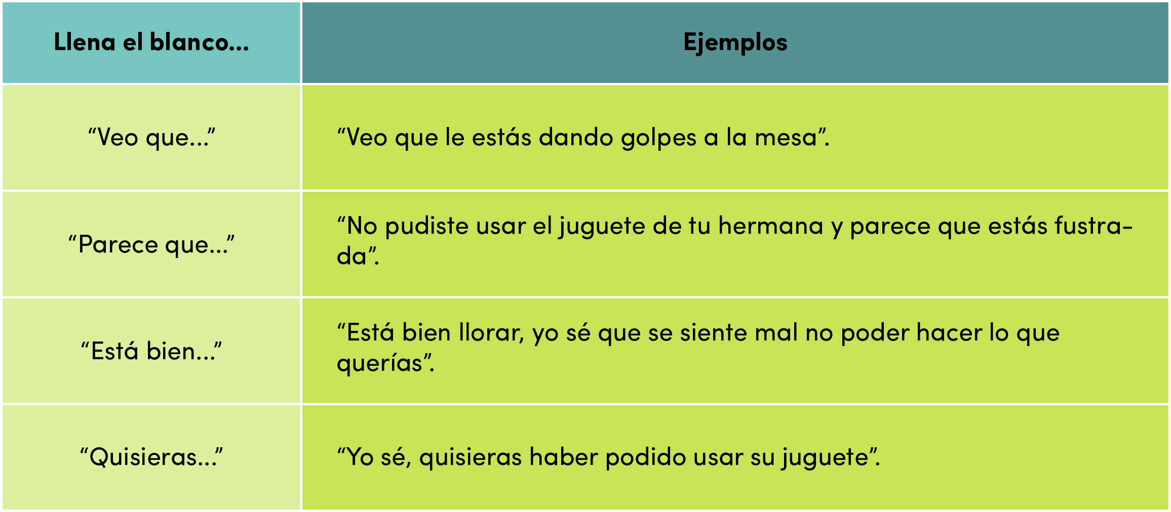 Cuidar la seguridad de la niña. Si está tirando cosas o haciéndose daño, la recomendación es intervenir con calma y seguridad: “voy a moverte al cuarto para que puedas tirar las almohadas. Voy a estar aquí para cuando estés lista para hablar”.